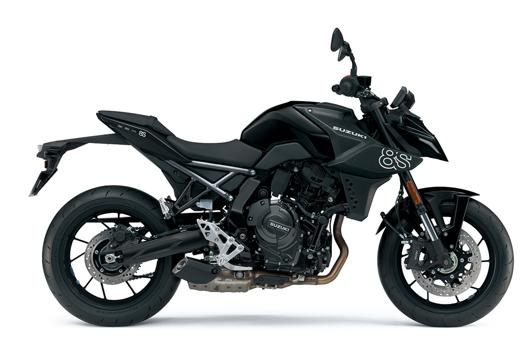 – På fälgarna sitter den nya generationen av Dunlop SPORTMAX Roadsport 2 med dimensionen 120/70ZR17 fram och 180/55ZR17 bak. Däckens stomme är specialkonstruerad för att matcha GSX-8S prestanda och gummiblandningen innehåller en ny kiselsammansättning med bättre våtgrepp och slitstyrka.